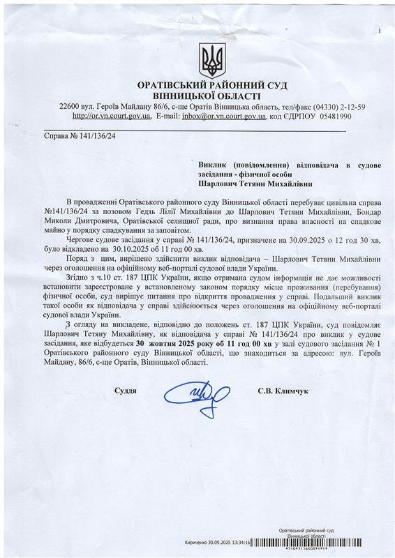 Оголошення про виклик до суду