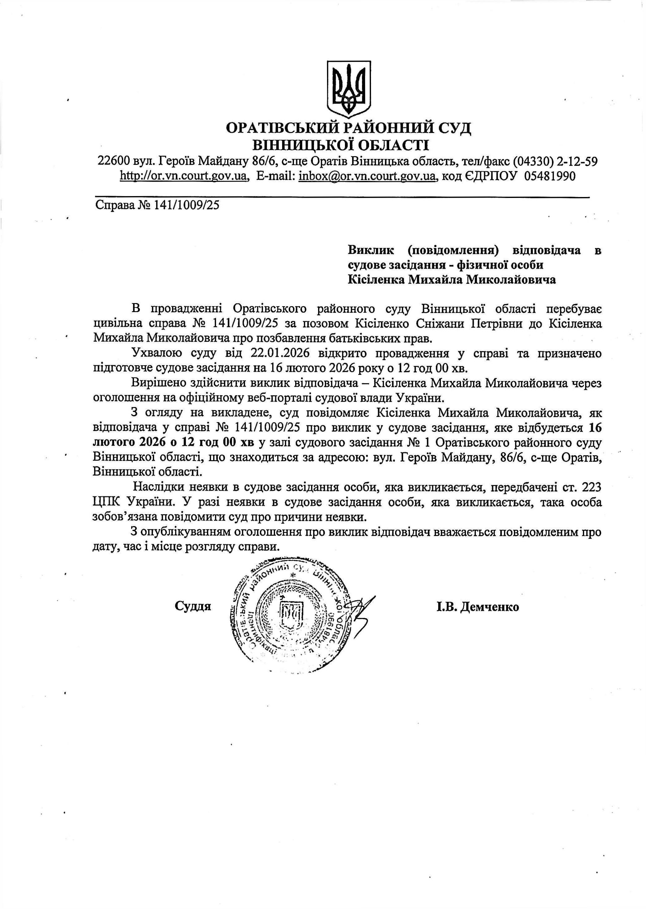 Оголошення про виклик до суду