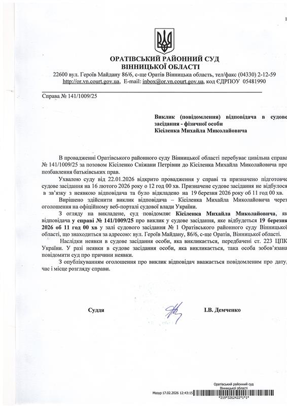 Оголошення про виклик до суду Кісіленка Михайла Миколайовича