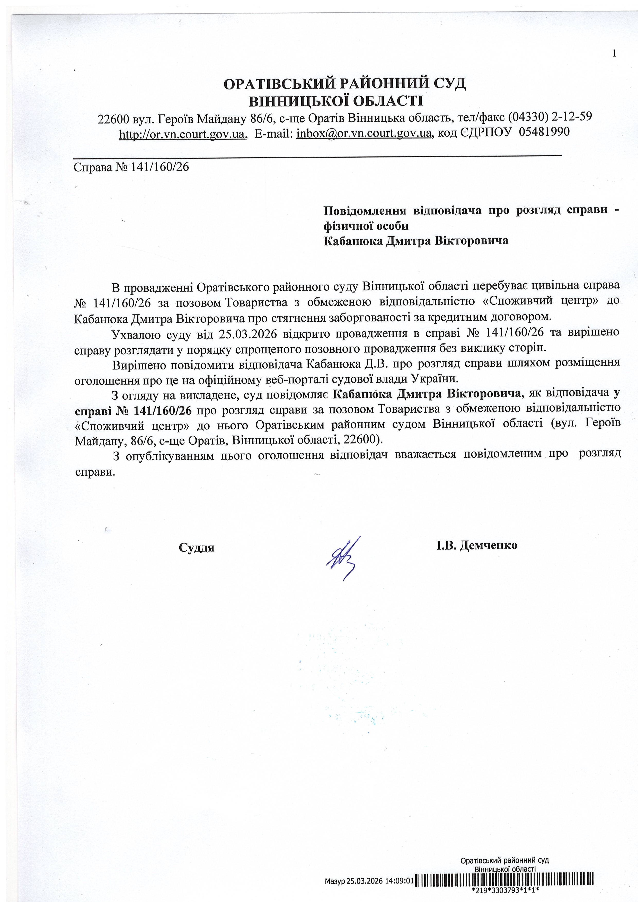 Оратівський районний суд Вінницької області